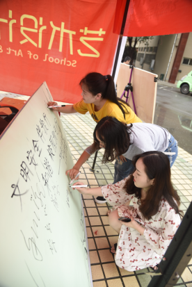 尽管当天的天气一直在下着雨,但这丝毫不能影响我院学生党支部党员的宣传、服务热情,在活动现场,他们用心在向广大师生做宣传,现场还展示了我院不同年级学生精心设计的关于校园出行安全的宣传海报,以艺术的形式语言告诫人们忽视交通安全的后果。另外还制作了倡议安全出行的承诺签名板,虽然临近中午雨越下越大,但是广大教师和学生还是纷纷在签名板上签名或留言,现场气氛十分热烈。